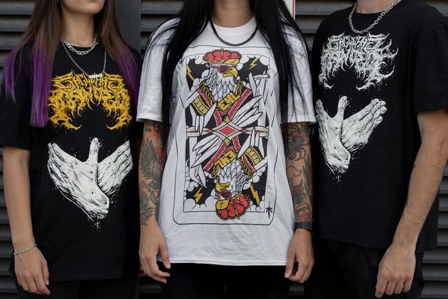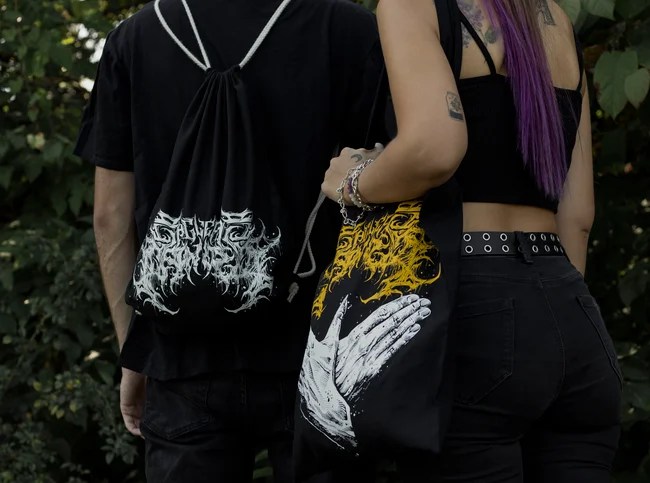 Dóra: A merch-témakör az egyik kedvencem! Az alap darabokat mindig közösen tervezzük, vannak régóta megvalósításra váró ötleteink is, és van egy csomó olyan cucc, amit menetközben dobunk be. Nekem lányként nagy szívfájdalmam volt korábban, hogy amikor szerettem volna koncerteken merchcuccokat venni, sosem volt külön rendes női kínálat, pedig szerintem van rá igény. Szeretek egy kis kreativitást belecsempészni a kínálatunkba, és itt külön meg kell köszönöm az Empire Merch csapatának a közreműködést, mindig segítenek összehozni azt, amit épp kitalálok.